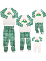 - Christmas pyjamas in green with Christmas motifs and a forest of fir trees for families, couples, kids, babies