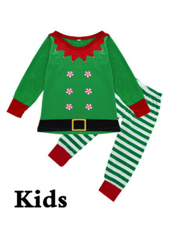 Schöner grüner Elfen-Weihnachtspyjama mit weißen Streifen für die ganze Familie, Paare, Kinder und Babys.