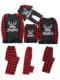 - Black and red Christmas pajamas with decorated reindeer antlers for families, couples, kids and babies
