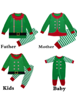 Mooie groene elfen kerstpyjama met witte strepen voor de hele familie, koppels, kinderen en baby’s.