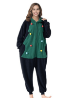 - Julpyjamas i svart med en grön gran och en stjärna på huvan för par